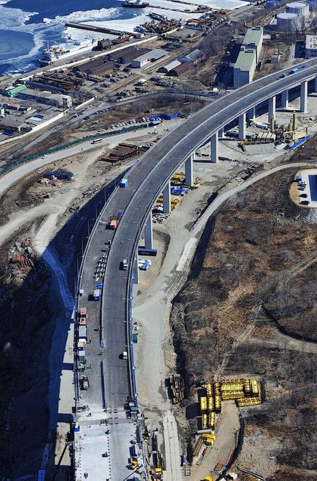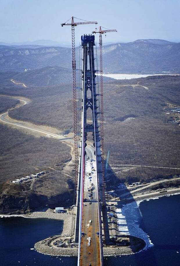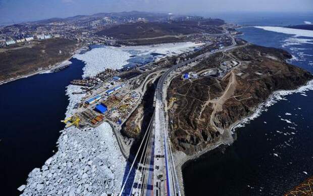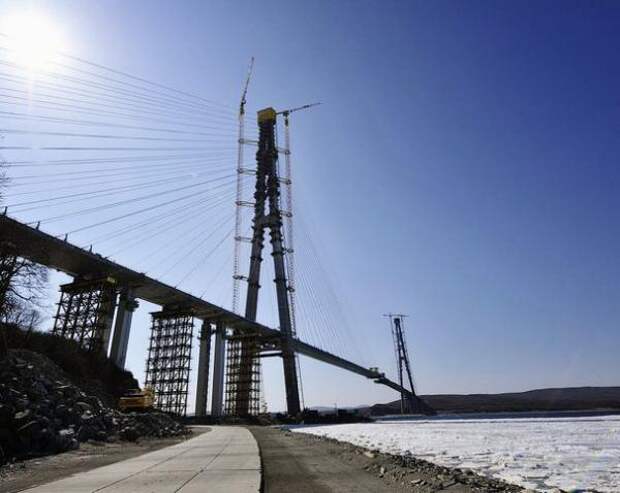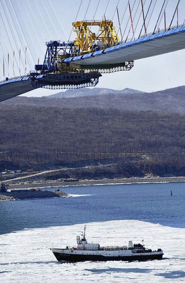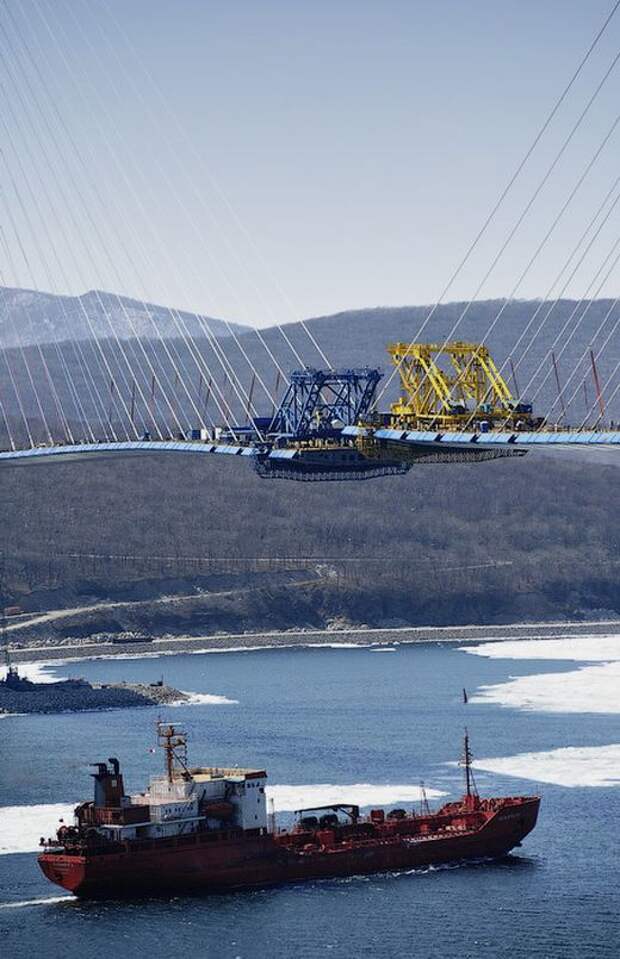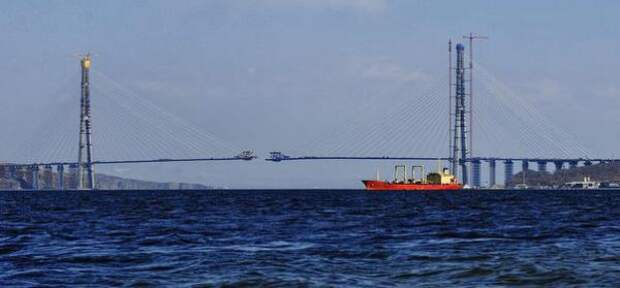 По информации пресс-службы ФКУ «Дальневосточная дирекция Минрегиона России», в планах мостостроителей – 6 апреля сомкнуть над проливом Босфор Восточный балки центрального руслового пролета моста.
