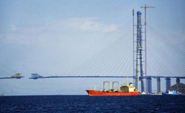 Строители мостового перехода через пролив Босфор Восточный полностью закончили работы по бетонированию пилона М6 на полуострове Назимова.