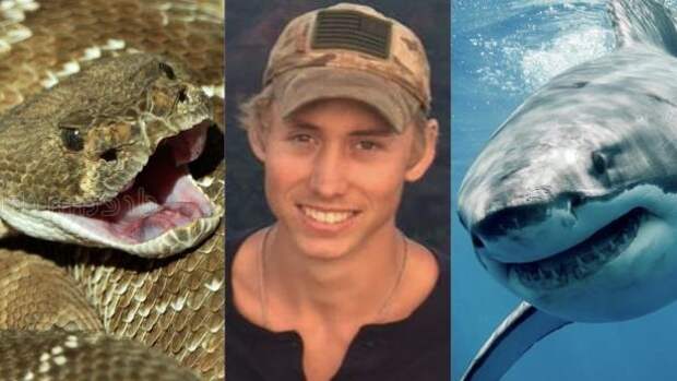 Всего за три года парня "пообнимал" медведь, укусила акула, а потом напала гремучая змея. К счастью, все обошлось без серьезных ранений.