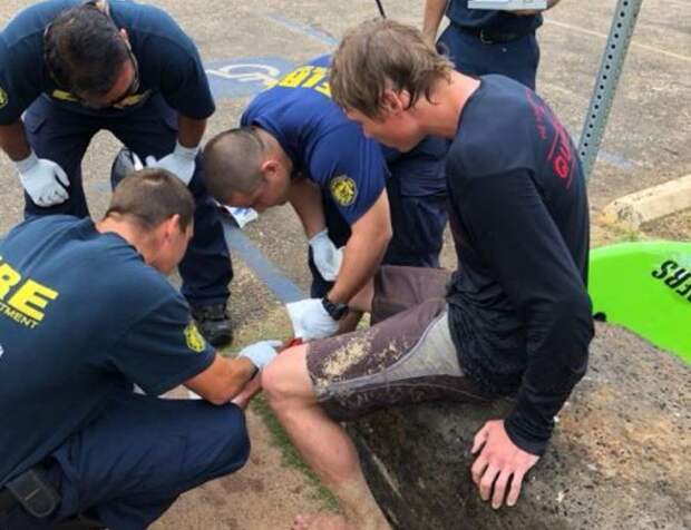 "Я сразу же заметил подо мной в толще воды плавающую акулу. Моя реакция была молниеносной, я инстинктивно ударил ее ногами несколько раз, а потом как можно быстрее поплыл к берегу. На рану потом наложили семь швов, а по следам от зубов предположили, что это была тигровая акула".