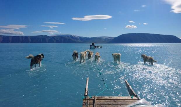 На прошлой недели мир облетела фотография с упряжкой собак в затопленной Гренландии. Фото было сделано исследователем Стеффеном Олсеном, который вместе со своим напарником отправился на поиски измерительных приборов, спрятанных в толщах льда с прошлого года.