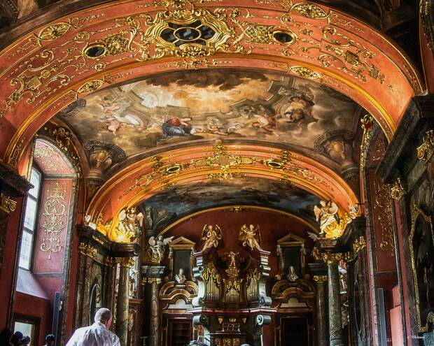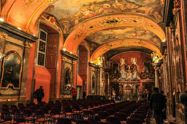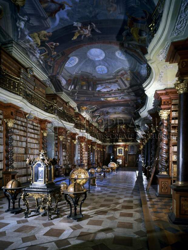 Комплекс рос в стиле Барокко (Вы вероятно слышали имена известных архитекторов, таких как Лурадо и Динценхофер или Брандл, который создавал интерьеры), и был модернизирован и увеличен во времена Классицизма, включая библиотеки: Национальную, государственную Техническую, а также Университетскую,