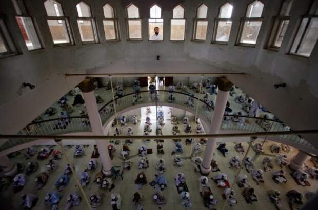 14. Мусульманская семинария в городе Карачи. Более двух тысяч студентов сдают экзамены по Исламу, а сверху за соблюдением порядка следит специальный охранник. (Reuters/Athar Hussain)