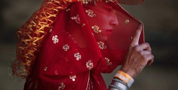 1. Священный для индусов храм Шри Хингладж Мата в пакистанской провинции Белуджистан. Молодая девушка во время паломничества прикрывает лицо накидкой. (Reuters/Akhtar Soomro)