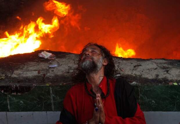 13. Молитва на фоне костра выглядит эффектно. Фестиваль фонарей возле храма мусульманского святого Мадхи Шах Лал Хусейна в Лахоре. (Reuters/Mohsin Raza)
