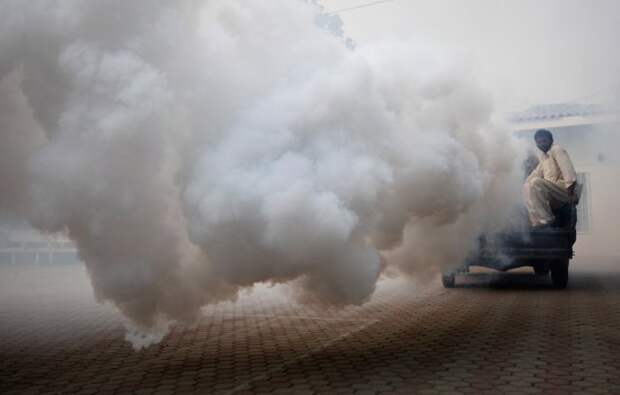 10. Чтобы уберечь население от эпидемии малярии, в городах проводятся вот такие внушительные дезинфекции против москитов. (Reuters/Mohsin Raza)